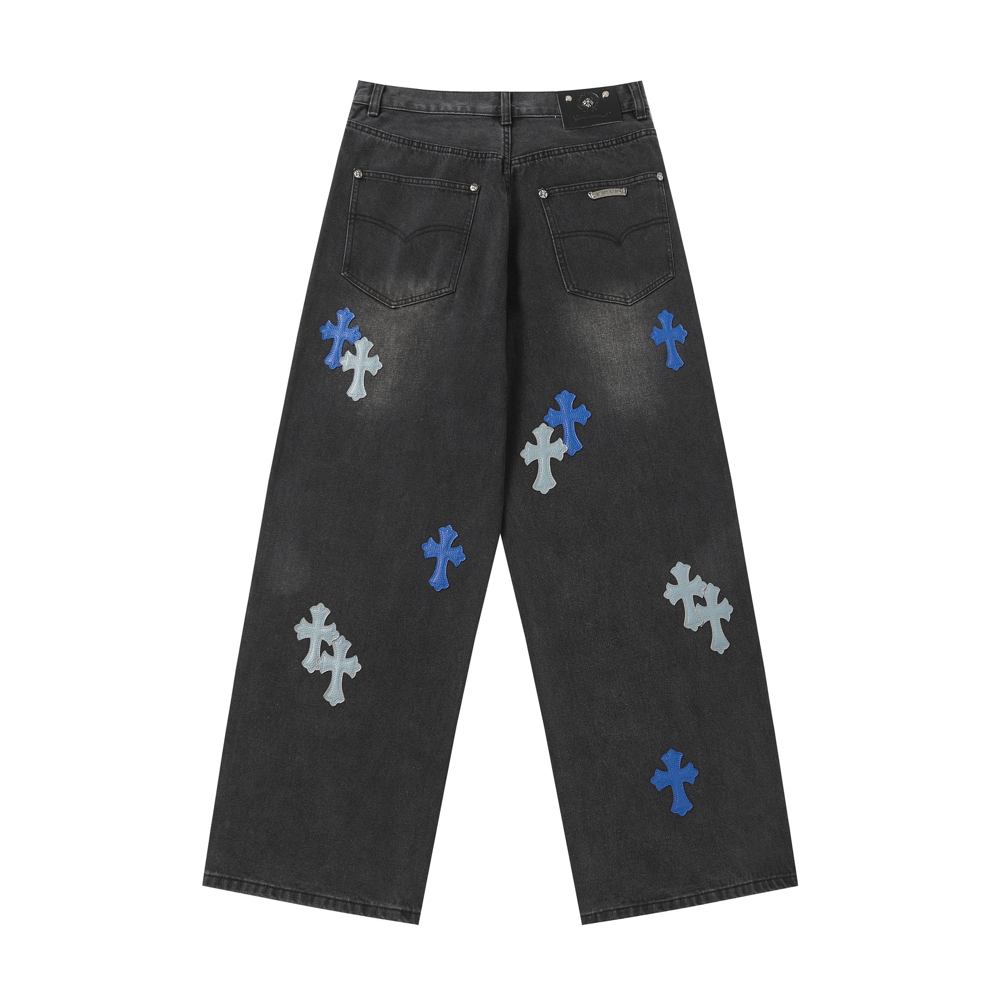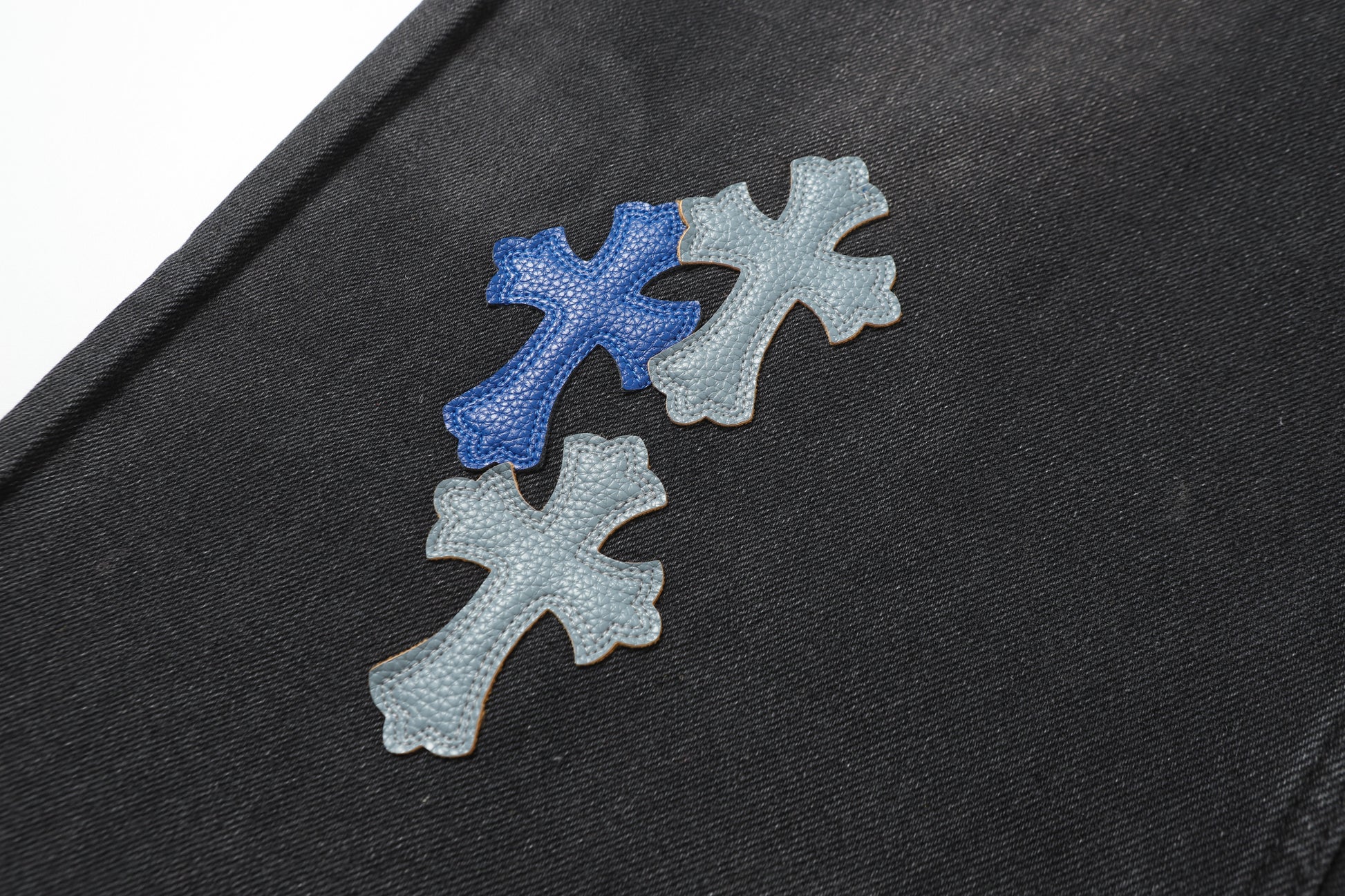 Chrome Hearts Grey & Blue Leather Cross Patches Jeans